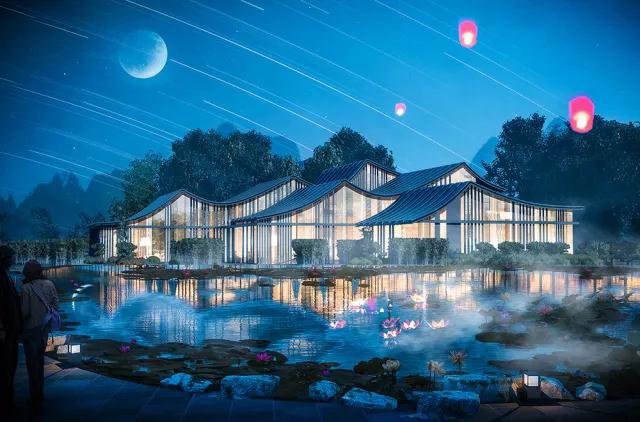 ▲溫泉接待中心夜景效果圖
