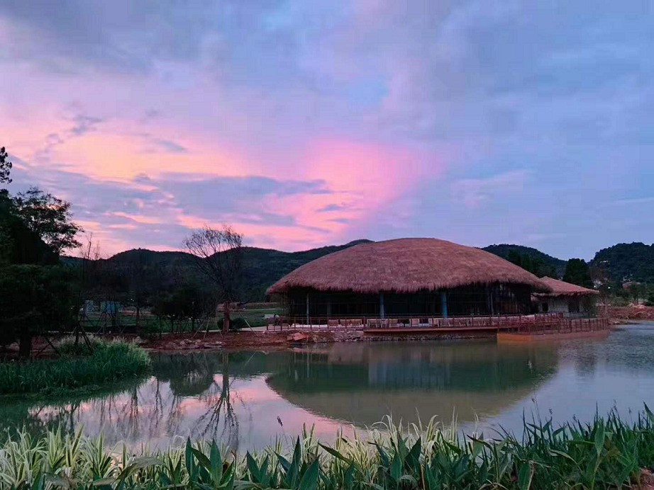 大碧頭國際度假區(qū)一望無垠的碧野,遠(yuǎn)處群山如黛,樹林蔥郁,水域碧波蕩漾,稻田似海浪起伏,渠道里的水潺潺地流著,叮叮淙淙,十分悅耳。各類小花都開了:紅的,紫的,粉的,黃的,像繡在一塊綠色大地毯上的絢麗斑點,成群的蜂蝶在花叢中忙碌著,飛來飛去吸著花蜜。傍晚宿友三五結(jié)伴,信步到內(nèi)環(huán)格?;ㄦ弊湘碳t,漫山遍野的綠叢,一簇簇盛開的小野花,讓我情不自盡的伸開了雙手,呼吸著清新的空氣,擁抱自然的純美。