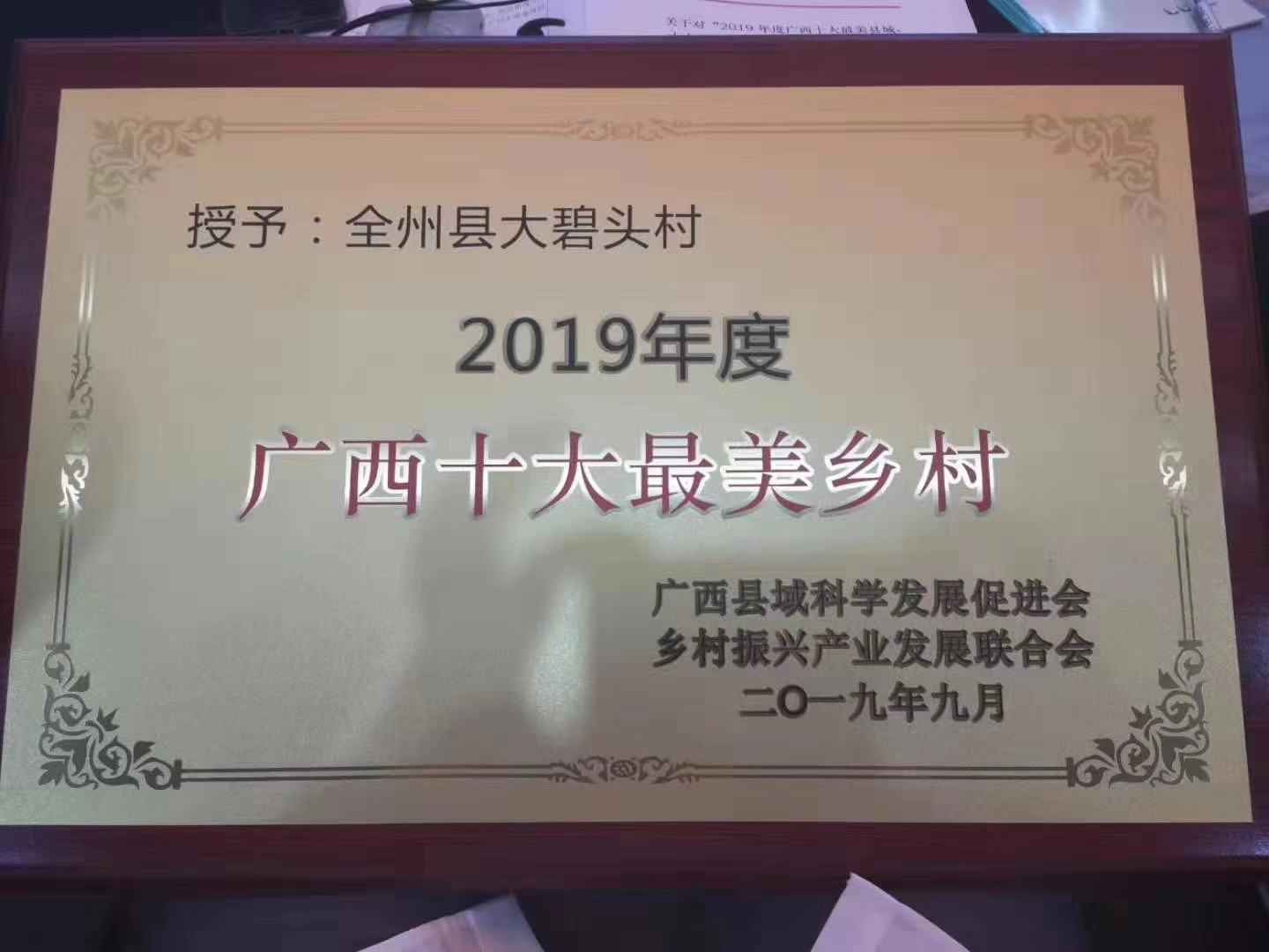 2019年9月23日我們迎接屬于大碧頭的榮譽2019年度“廣西十大最美鄉(xiāng)村”之稱。美是各級領(lǐng)導、同事以及我們最美的村民攜手共創(chuàng)的,這份榮譽是大家有目共睹的。